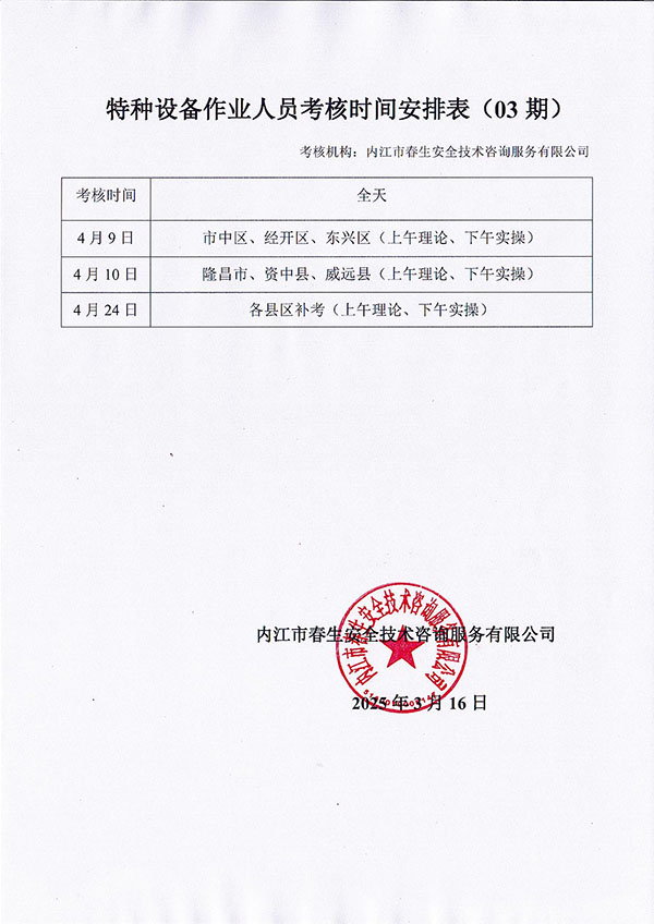 2025年春生公司第3期考核時間安排表