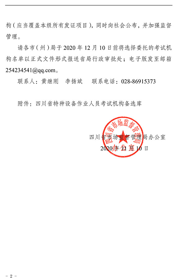 關(guān)于公布四川省特種設(shè)備作業(yè)人員考試機(jī)構(gòu)備選庫的通知